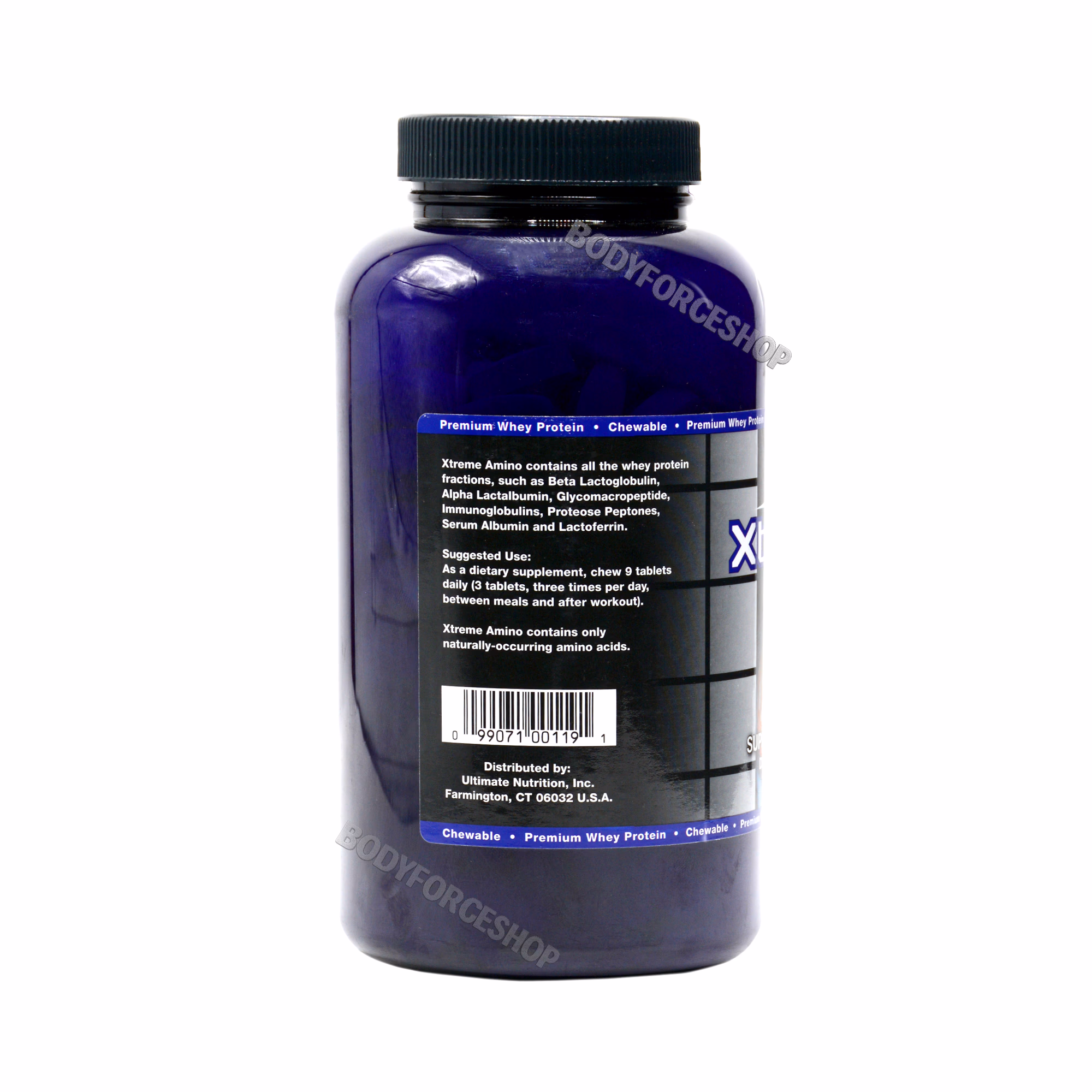 Xtreme Amino حاوی تمام ۲۰ آمینواسید استاندارد بدن است که از پروتئین وی ایزوله با کیفیت بالا استخراج شدهاند.فرمولاسیون آن شامل نسبت بالای BCAA (۸:۱:۱) با تمرکز ویژه بر لوسین برای تحریک سنتز پروتئین عضلانی است.هر وعده شامل ۴.۵ گرم پروتئین و حدود ۲۰ کالری است که بدون چربی و قند اضافه ارائه میشود.فرآیند تولید با میکرو و اولترا فیلتراسیون در دمای پایین انجام شده تا ساختار پروتئین حفظ شود.فرم جویدنی قرصها باعث شده مصرف آن آسانتر و بدون نیاز به بلع قرصهای بزرگ باشد.مناسب برای مصرف قبل، حین یا بعد تمرین جهت جلوگیری از تحلیل عضلانی و حفظ انرژی.فاقد گلوتن، سویا، کازئین و مواد ممنوعه بوده و برای رقابتهای رسمی مناسب است.ترکیب با ویتامین B6 جذب آمینواسیدها را بهبود میبخشد و متابولیسم را تقویت میکند.مناسب برای دورههای کات، حجم خشک، ریکاوری و رژیمهای کمکالری است.