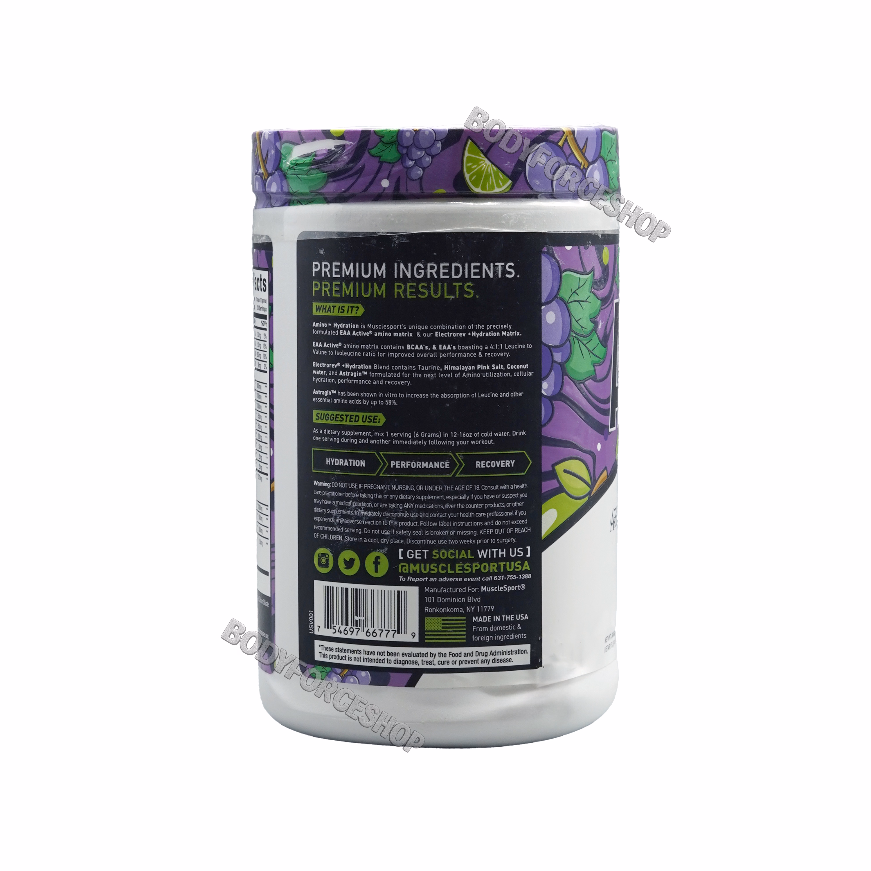 مکمل AMINO + Hydration از کمپانی آمریکایی MuscleSport، یک فرمول پیشرفته برای بازسازی عضله، آبرسانی سلولی و افزایش استقامت در تمرینات شدید است. این محصول با ترکیب اختصاصی EAA Active + ElectroREV + AstraGin طراحی شده که هرکدام نقش کلیدی در جذب بهتر آمینواسیدها، حفظ تعادل الکترولیتی و افزایش سنتز پروتئین دارند. MuscleSport با تمرکز بر نوآوری، این محصول را برای ورزشکاران حرفهای در دورههای حجم خشک، مسابقهای یا تمرینات انفجاری فرموله کرده است. بستهبندی آن شامل ۳۱۲ گرم پودر معادل ۳۰ سروینگ کامل است.