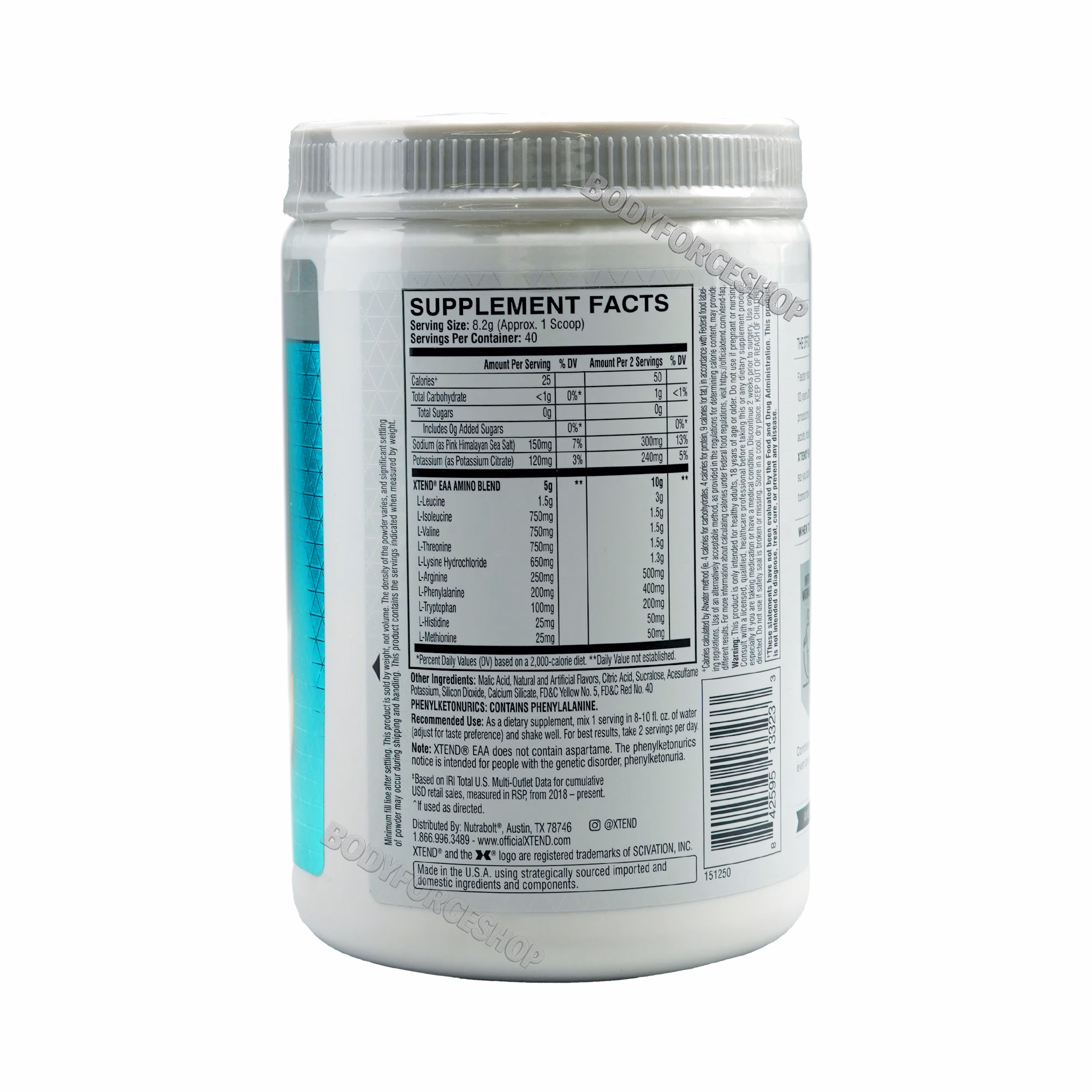 هر سروینگ حاوی دوز علمی و کامل از EAA است که از منابع گیاهی استخراج شده و فاقد شکر، گلوتن، کافئین یا محرکهای عصبی میباشد. به همین دلیل میتوان آن را در تمام ساعات روز، قبل، حین یا بعد تمرین مصرف کرد. XTEND EAA گزینهای حرفهای برای ورزشکارانی است که تمرینات انفجاری، ستهای سنگین یا رژیمهای سخت دارند. وجود آمینواسیدهای شاخهدار (BCAA) به همراه آمینواسیدهای ضروری باعث فعالسازی فرآیند سنتز پروتئین عضلانی شده و مانع از کاتابولیسم عضله میشود. برند XTEND با بیش از ۱۰ سال تجربه تخصصی در صنعت مکملهای ورزشی، بهعنوان مرجع بازسازی و ریکاوری در بین ورزشکاران حرفهای شناخته میشود.اگر هدف شما افزایش سطح انرژی در کنار افزایش روند هایپرتروفی و عضله ساز ی می باشد .