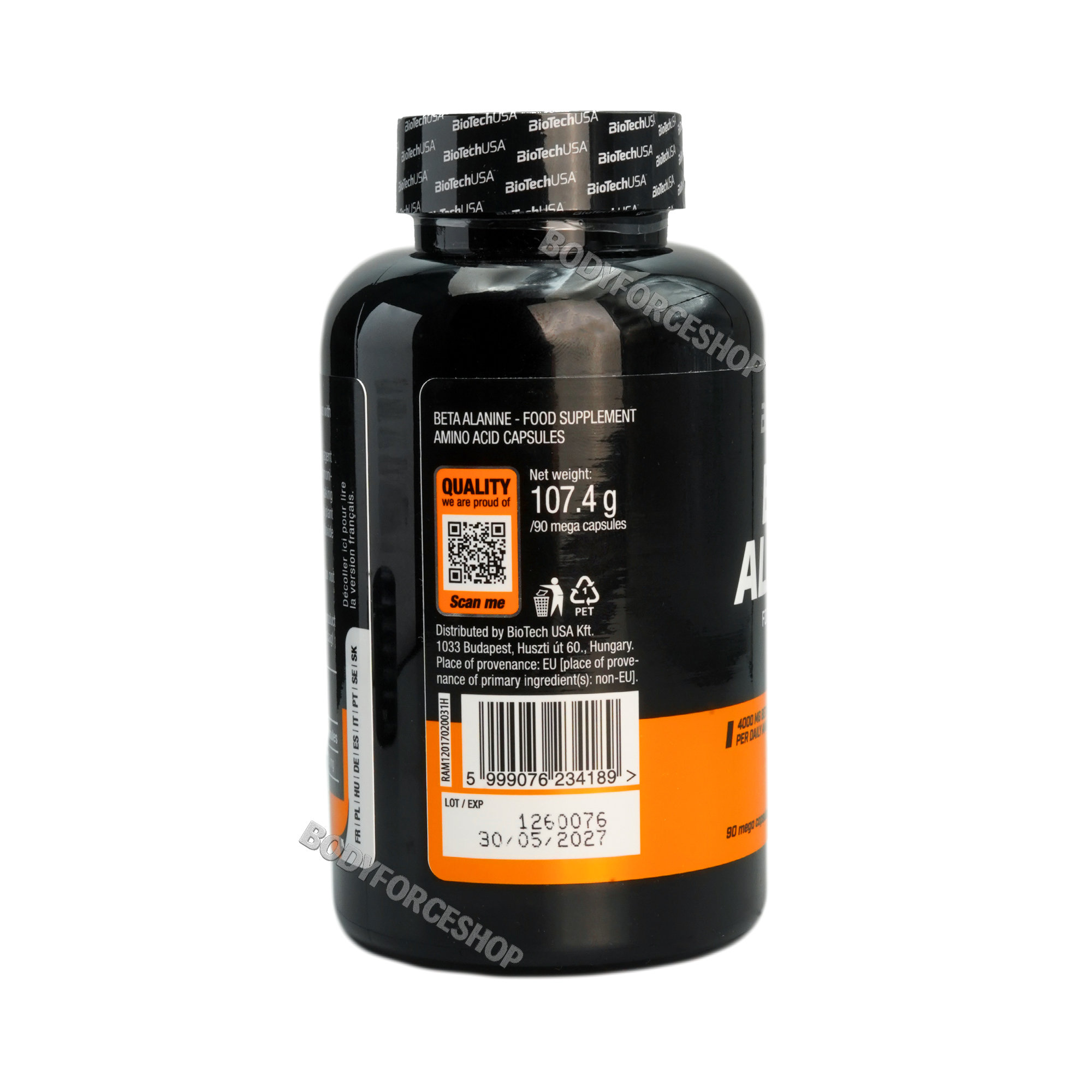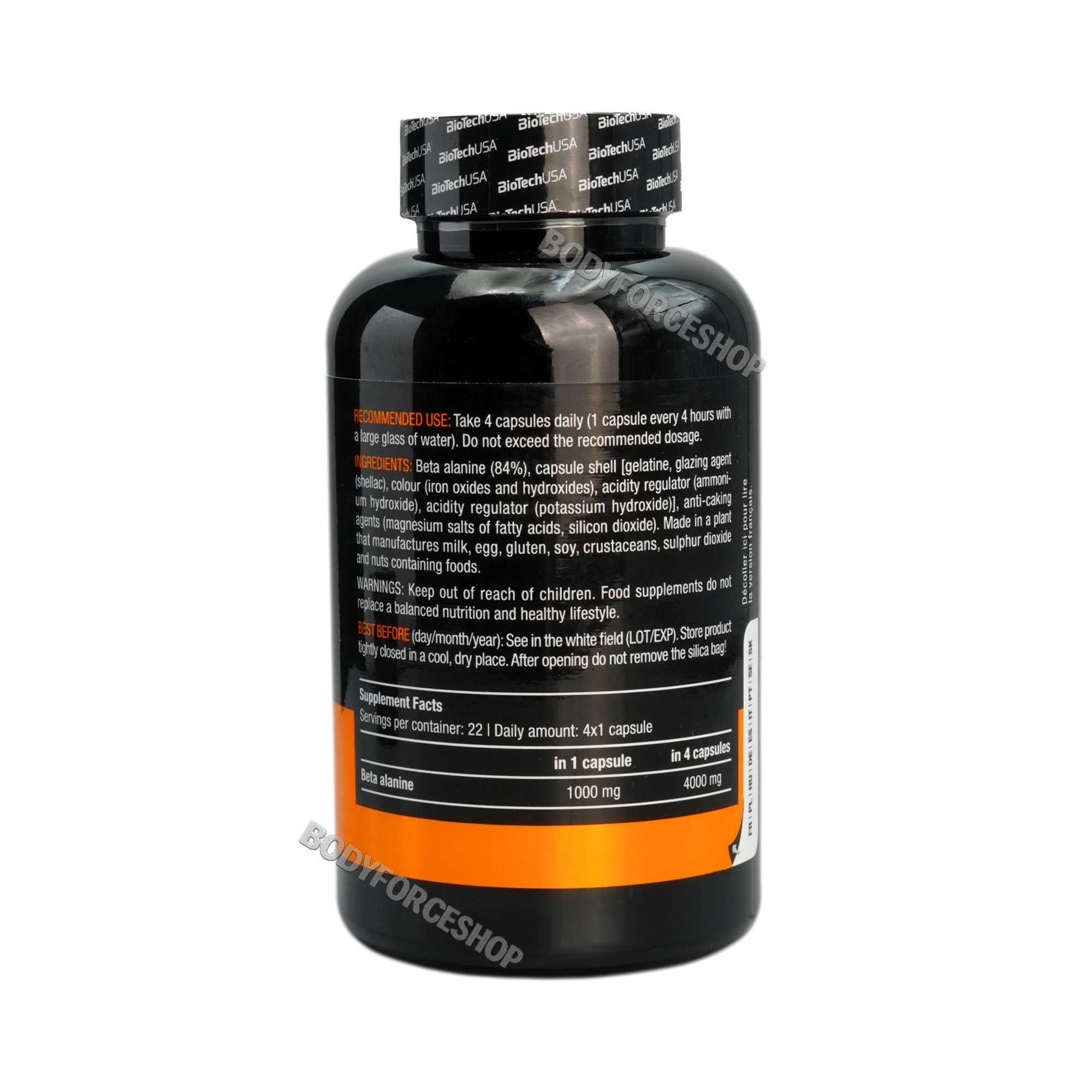 بتا آلانین کپسولی کمپانی BioTechUSA یک مکمل تخصصی برای افزایش استقامت، کاهش خستگی عضلانی و بهبود عملکرد ورزشی و جلوگیری از ترشح اسید لاکتیک برای جلوگیری از خستگی است. هر کپسول حاوی ۱۰۰۰ میلیگرم بتا آلانین است و در بستهبندی ۹۰ عددی عرضه میشود .