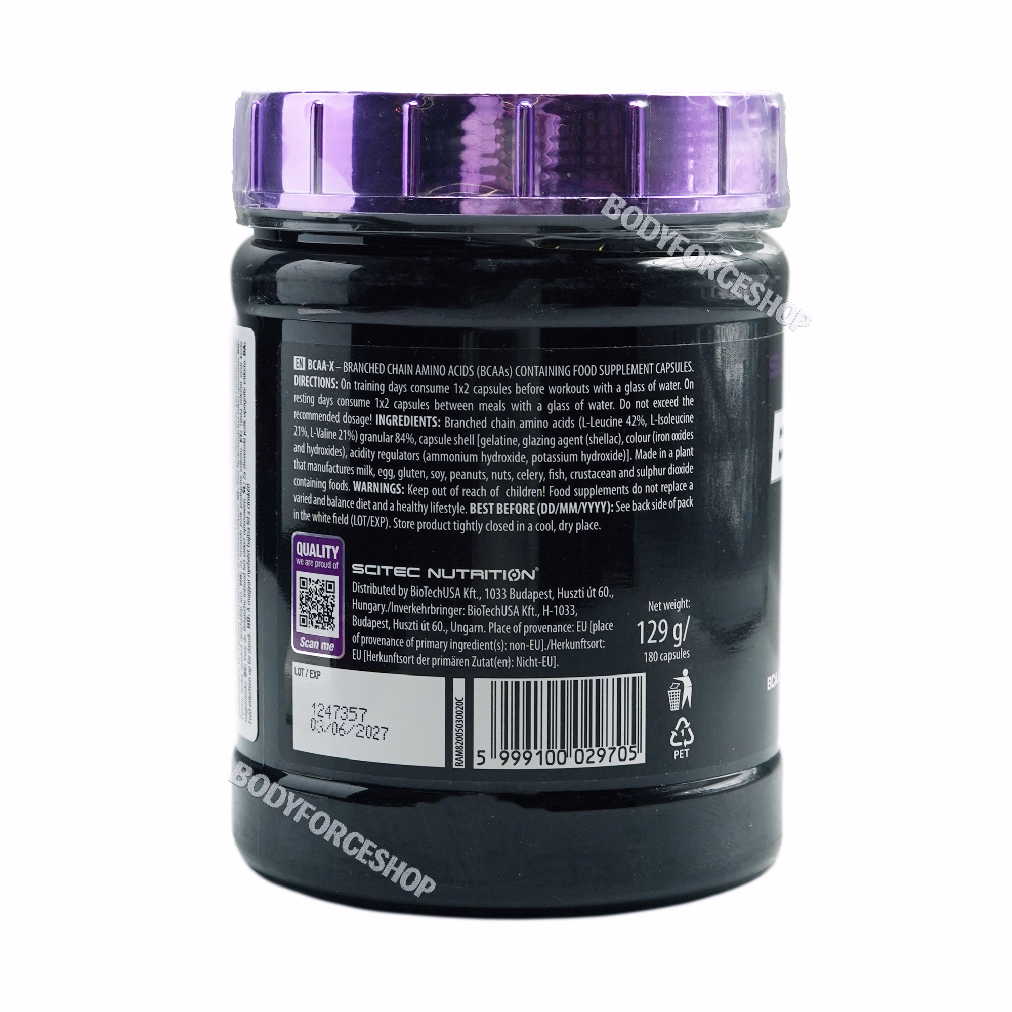بیسیدبلای سایتک (Scitec BCAA-X) یک مکمل حرفهای در فرم کپسول است که با نسبت علمی ۲:۱:۱ از آمینواسیدهای شاخهدار لوسین، ایزولوسین و والین طراحی شده. این ترکیب بهطور مستقیم در سنتز پروتئین عضلانی، جلوگیری از تحلیل عضلات و تسریع ریکاوری نقش دارد. در هر دوز مصرفی (۲ کپسول)، ۱۲۰۰ میلیگرم BCAA دریافت میشود که شامل ۶۰۰ میلیگرم لوسین، ۳۰۰ میلیگرم ایزولوسین و ۳۰۰ میلیگرم والین است. این محصول فاقد شیرینکننده، رنگ مصنوعی و طعمدهنده است.