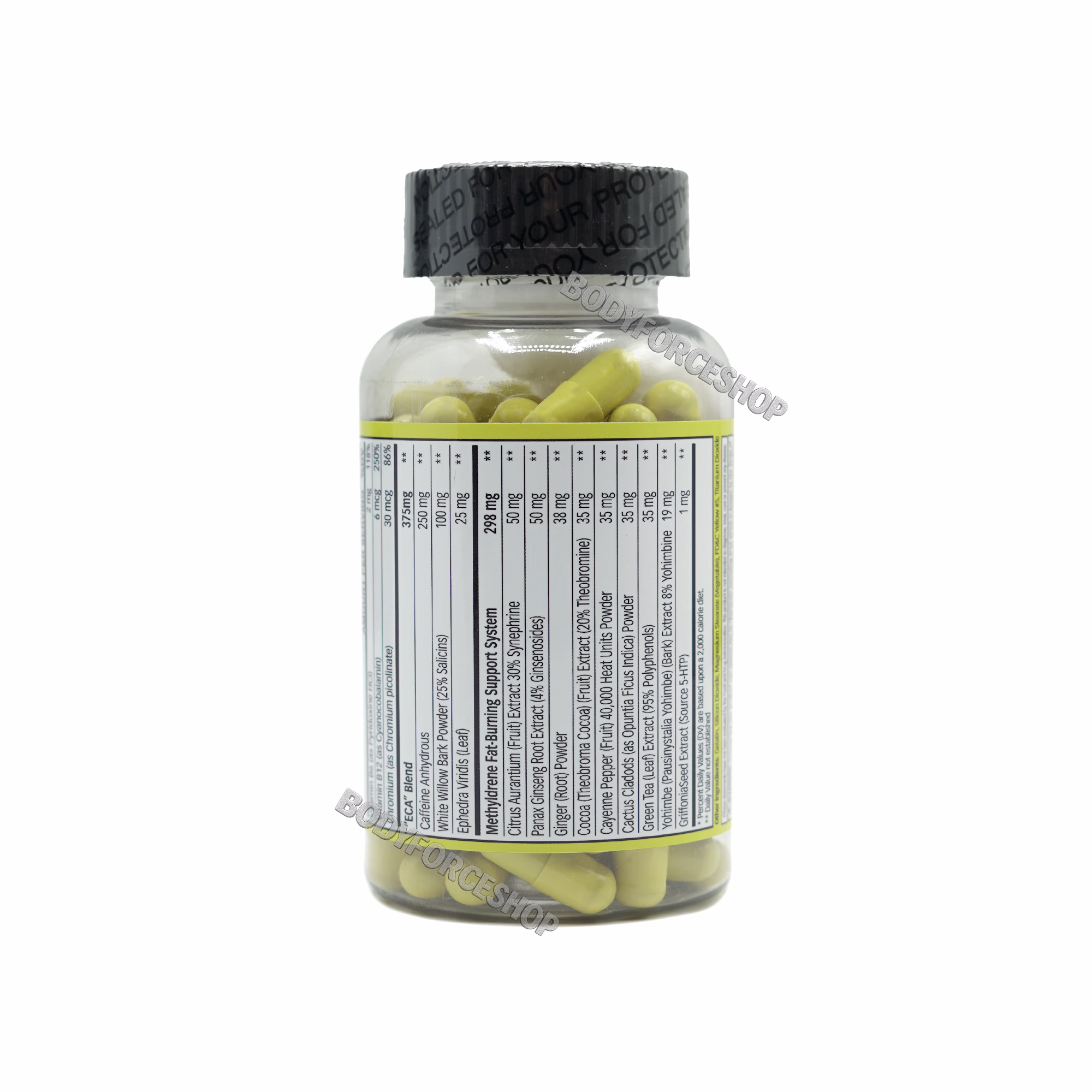 متیلدرن ۲۵ یکی از قویترین مکملهای چربیسوز ترموژنیک موجود در بازار جهانی است که توسط شرکت کمپانی آمریکایی Cloma Pharma توسعه یافته است. این محصول با بهرهگیری از ترکیب کلاسیک و مؤثر ECA Stack شامل افدرین، کافئین و آسپرین طبیعی، طراحی شده تا با تحریک سیستم عصبی سمپاتیک، متابولیسم بدن را افزایش داده و فرآیند لیپولیز را بهصورت مؤثر فعال نماید.در هر کپسول، ۲۵ میلیگرم افدرا ویرایدیس، ۲۵۰ میلیگرم کافئین ، ۱۰۰ میلیگرم عصاره پوست بید سفید و ترکیبات ترموژنیک دیگر از جمله سینفرین، یوهیمبین، چای سبز، فلفل کاین، زنجبیل، جینسینگ و 5-HTP گنجانده شدهاند که موجب افزایش دمای بدن، کنترل اشتها، ارتقای تمرکز ذهنی و بهبود خلقوخو میشوند.