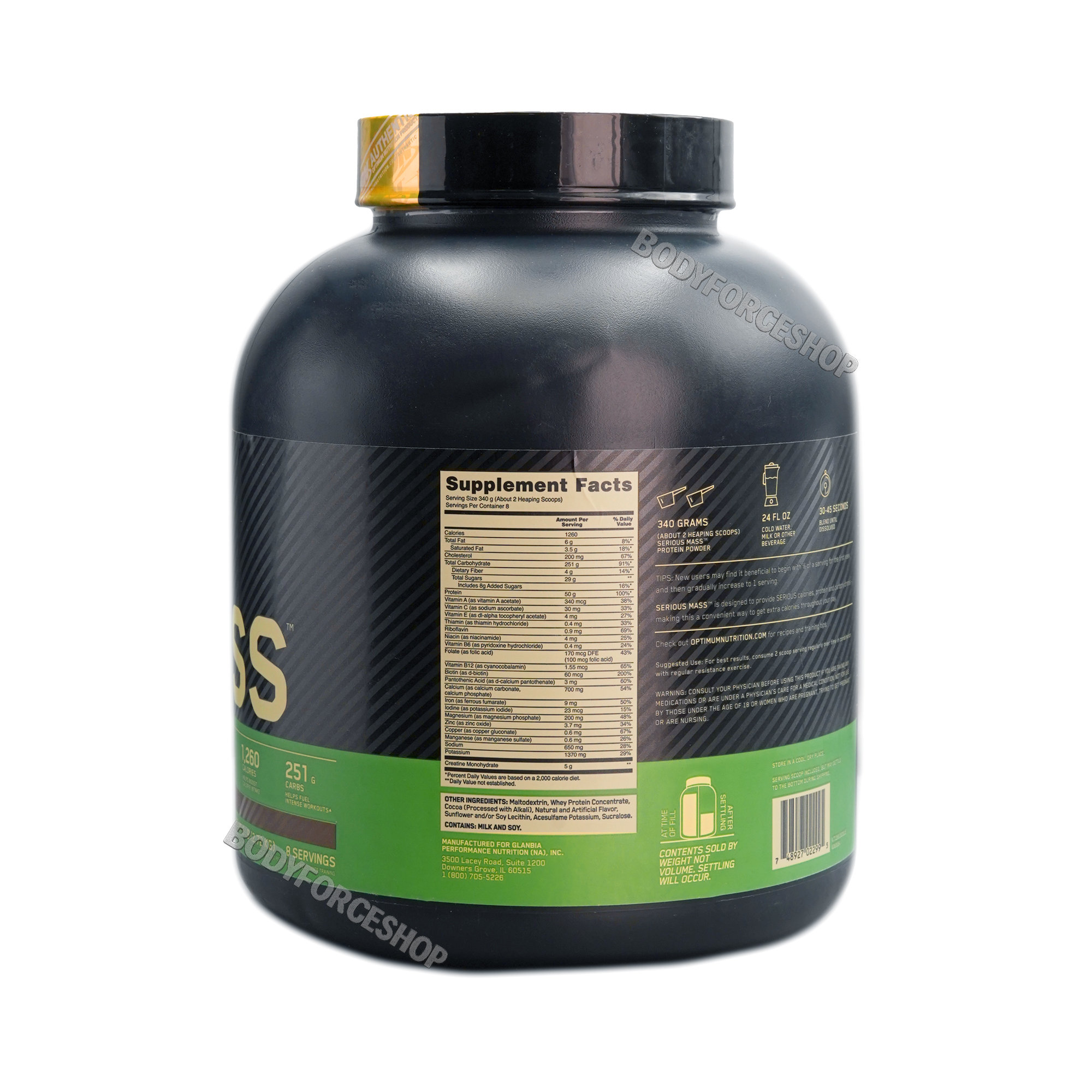 • روش مصرف: ۲ پیمانه (حدود ۲۴۰ گرم) از ON Serious Mass را با ۴۵۰ میلیلیتر آب یا شیر ترکیب کرده و پس از صبحانه و بعد تمرین یا به عنوان میانوعده مصرف کنید.