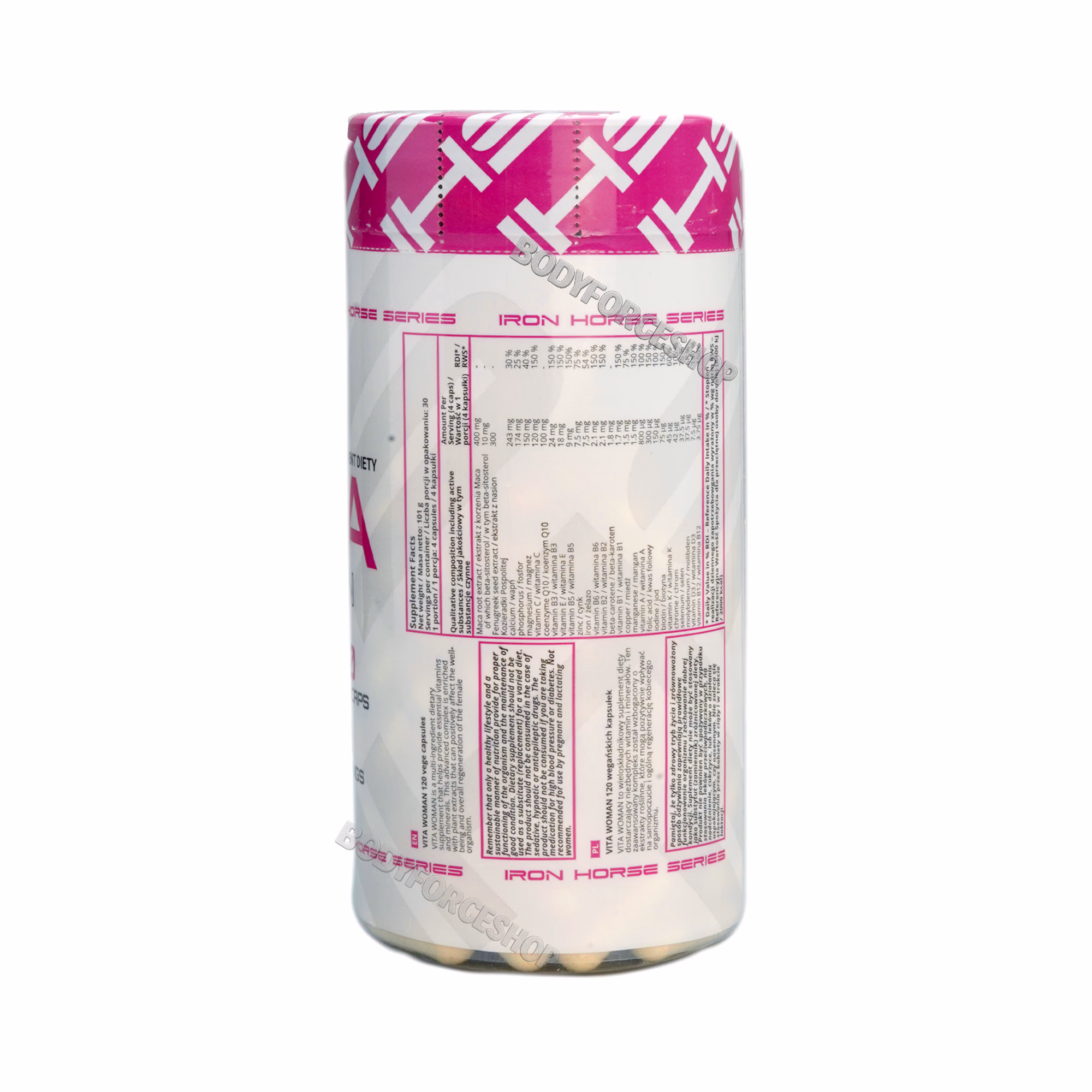 مکمل VITA WOMAN از کمپانی تخصصی لهستانی Iron Horse Series IHS Technology تولید شده که در زمینه مکملهای ورزشی و تخصصی برای ورزشکاران حرفهای فعالیت دارد. این محصول بهطور خاص برای نیازهای تغذیهای بانوان طراحی شده و در هر سروینگ ترکیبی از ویتامینها، مواد معدنی، آنتیاکسیدانها، عصارههای گیاهی و ترکیبات متابولیکی را ارائه میدهد. فرمولاسیون آن شامل ویتامینهای گروه B، C، D، E، K، زینک، آهن، منیزیم، کروم، سلنیوم، بیوتین، فولیک اسید، عصاره چای سبز، Q10، و ترکیبات ضد استرس و ضد التهاب است. بستهبندی آن شامل 120 عدد کپسول گیاهی (Vege Caps) بوده و برای مصرف یکماهه طراحی شده است.