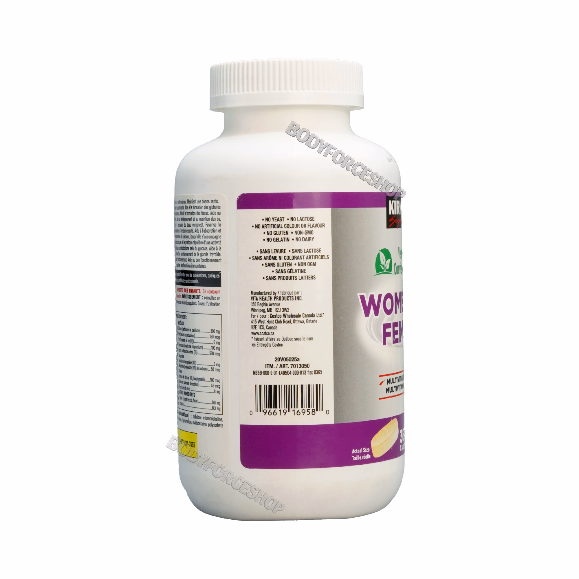 مکمل Kirkland Women 50+ از کمپانی معتبر آمریکایی Kirkland Signature، با بیش از ۲۶ ریزمغذی ضروری، بهطور علمی برای بانوان بالای ۵۰ سال فرموله شده است. این محصول با تأییدیه رسمی USP Verified، در بستهبندی اقتصادی ۳۶۵ عددی عرضه میشود و مناسب مصرف یکساله است. فرمولاسیون آن شامل ویتامینهای A، C، D3، E، K، گروه B، کلسیم، منیزیم، زینک، سلنیوم، کروم، بیوتین و لوتئین است که به حفظ سلامت قلب، استخوانها، سیستم ایمنی، پوست، مو، چشم و عملکرد شناختی کمک میکند. این محصول (Vegetarian Friendly) بوده و فاقد گلوتن، لاکتوز، مخمر، رنگ و طعمدهنده مصنوعی است.