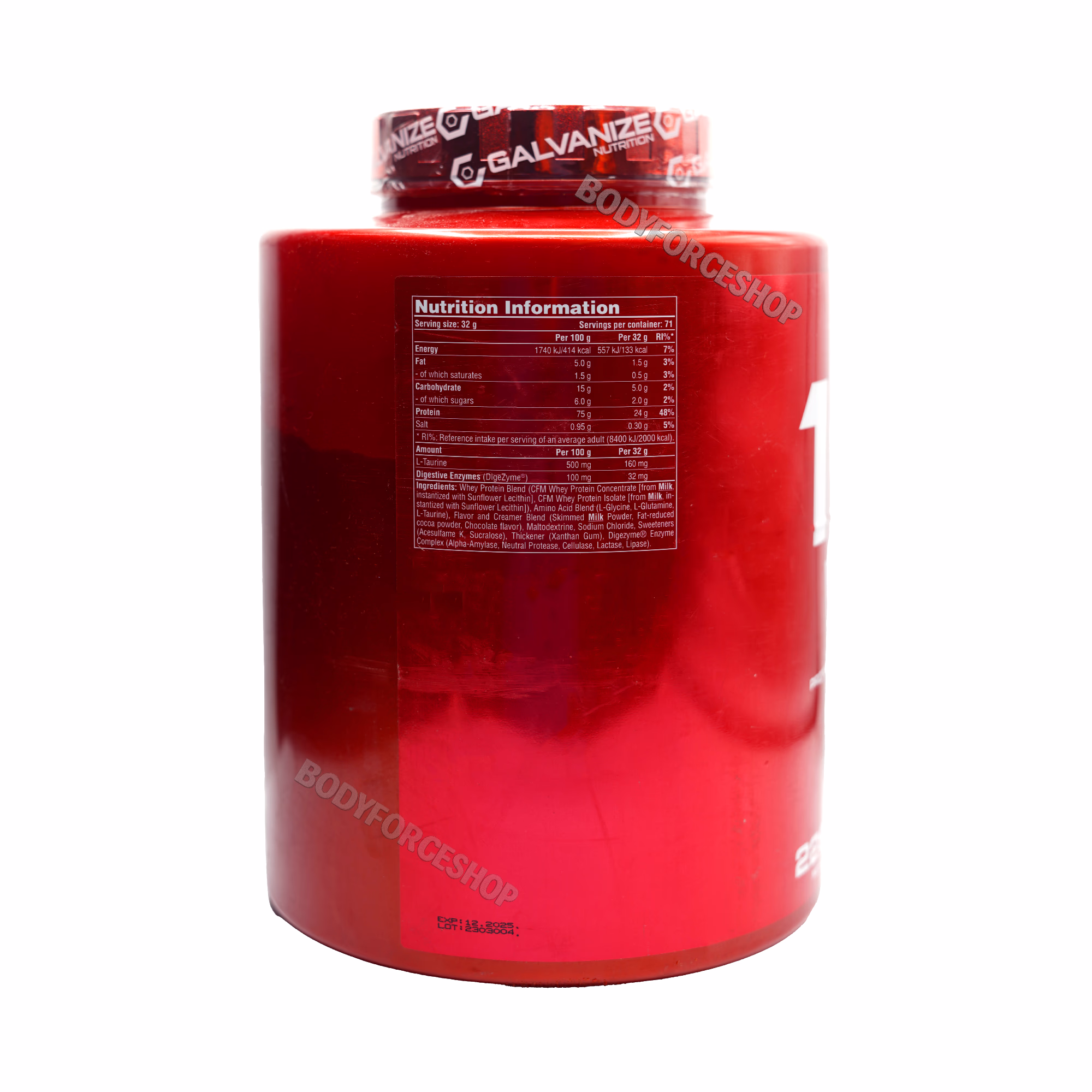 مکمل Galvanize 100% Whey Protein از کمپانی اروپایی Galvanize Nutrition تولید شده که در کشور مجارستان فعالیت دارد. این محصول ترکیبی از وی کنسانتره و وی ایزوله با کیفیت بالا است که در هر سروینگ (32گرم) حدود 24 گرم پروتئین خالص، 160 میلیگرم ال-تائورین و مقادیر مناسبی از BCAA ارائه میدهد. فرمولاسیون آن با آنزیمهای گوارشی DigeZyme® تقویت شده تا جذب سریعتر و هضم راحتتری داشته باشد. این پروتئین برای رشد عضله، حفظ توده عضلانی، ریکاوری سریع و تأمین انرژی تمرینی طراحی شده و در بستهبندیهای 2280 گرمی با حدود 71 سروینگ عرضه میشود.