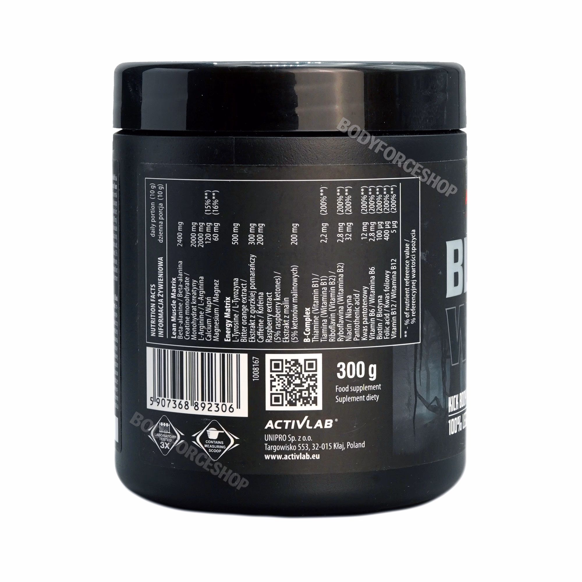 مکمل Black Wolf از کمپانی لهستانی Activlab، یک پری ورک اوت چندجزئی و علمیفرمولهشده است که برای افزایش انرژی، تمرکز ذهنی، پمپ عضلانی و کاهش خستگی طراحی شده. Activlab با سابقهای معتبر در تولید مکملهای ورزشی، این محصول را با ترکیبی از بتا آلانین، کراتین مونوهیدرات، ال-آرژنین، ال-تیروزین، کافئین، عصاره پرتقال تلخ، کتونهای تمشک، ویتامینهای گروه B و مواد معدنی تولید کرده تا عملکرد ورزشکاران در تمرینات قدرتی، HIIT و مسابقهای به حداکثر برسد. فرمولاسیون آن با تکنولوژی جذب سریع و طعم لیمویی خوشخوراک، در قالب پودر ۳۰۰ گرمی عرضه شده و برای مصرف قبل تمرین توصیه میشود.