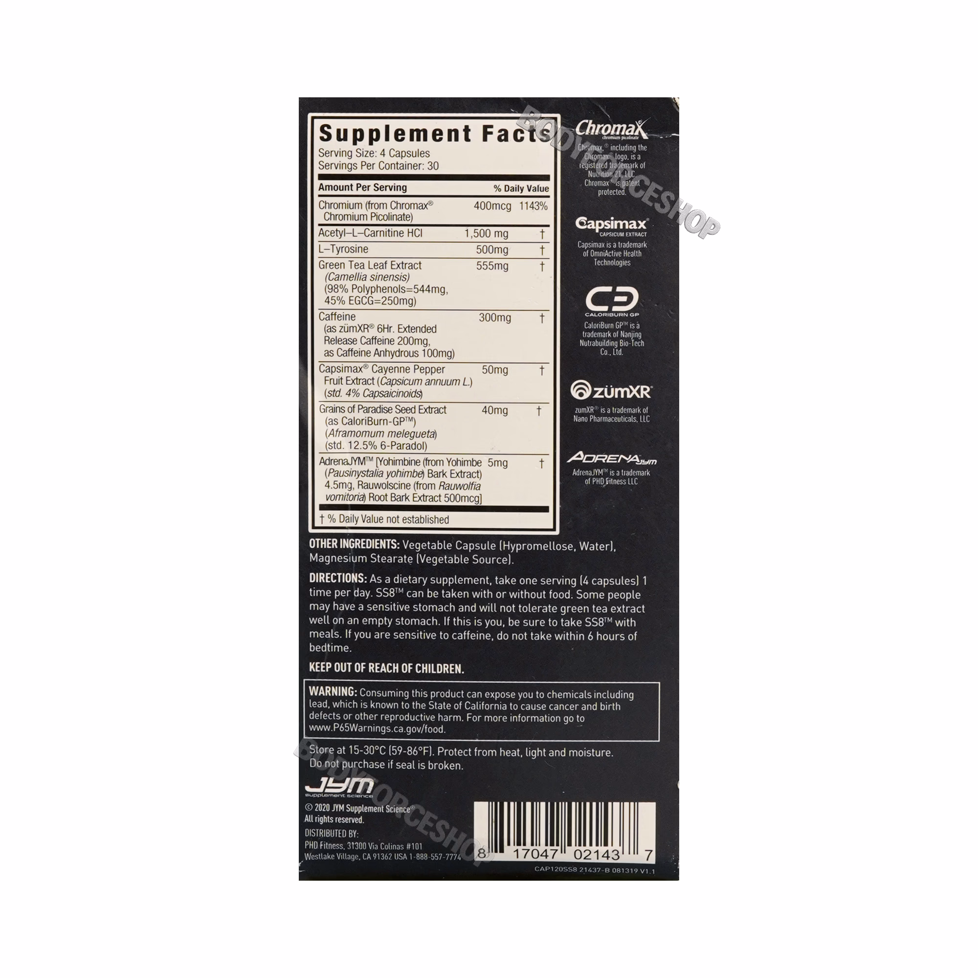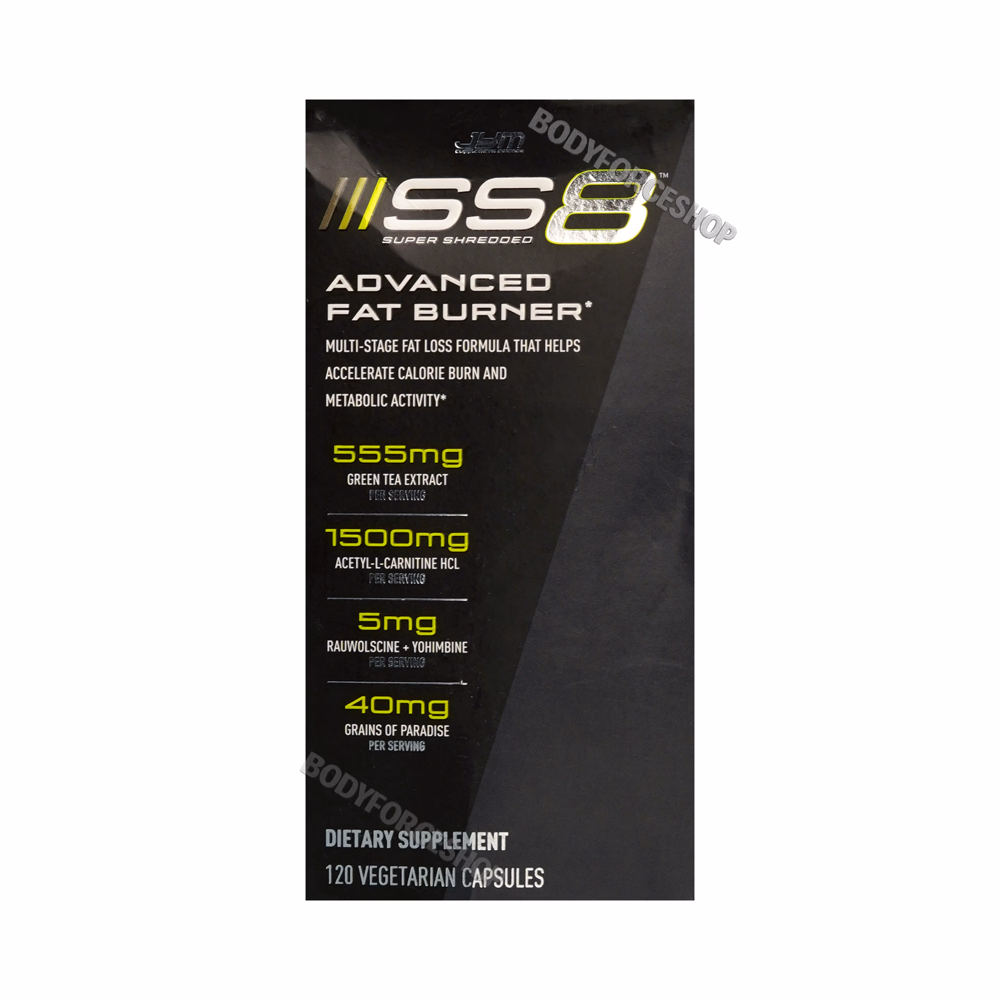 مکمل SS8 Advanced Fat Burner از کمپانی آمریکایی JYM Supplement Science، یک فرمول چندمرحلهای و پیشرفته برای چربیسوزی، افزایش انرژی، کنترل اشتها و حفظ عضله خشک است. این محصول توسط دکتر Jim Stoppani، محقق سابق دانشگاه Yale و متخصص تغذیه ورزشی، طراحی شده و بهعنوان نسخه ارتقاءیافتهی مکمل معروف Shred JYM شناخته میشود. هر سروینگ شامل ترکیب قدرتمندی از ۸ ماده فعال از جمله Acetyl-L-Carnitine، Green Tea Extract، Capsimax®، Caffeine، Chromium Picolinate، Grains of Paradise، L-Tyrosine و AdrenaJYM® است که باعث افزایش متابولیسم، آزادسازی چربی ذخیرهشده، جلوگیری از بازگشت چربی و افزایش تمرکز ذهنی میشوند. بستهبندی این محصول شامل ۱۲۰ عدد کپسول گیاهی بوده و برای مصرف ۳۰ روزه طراحی شده است.