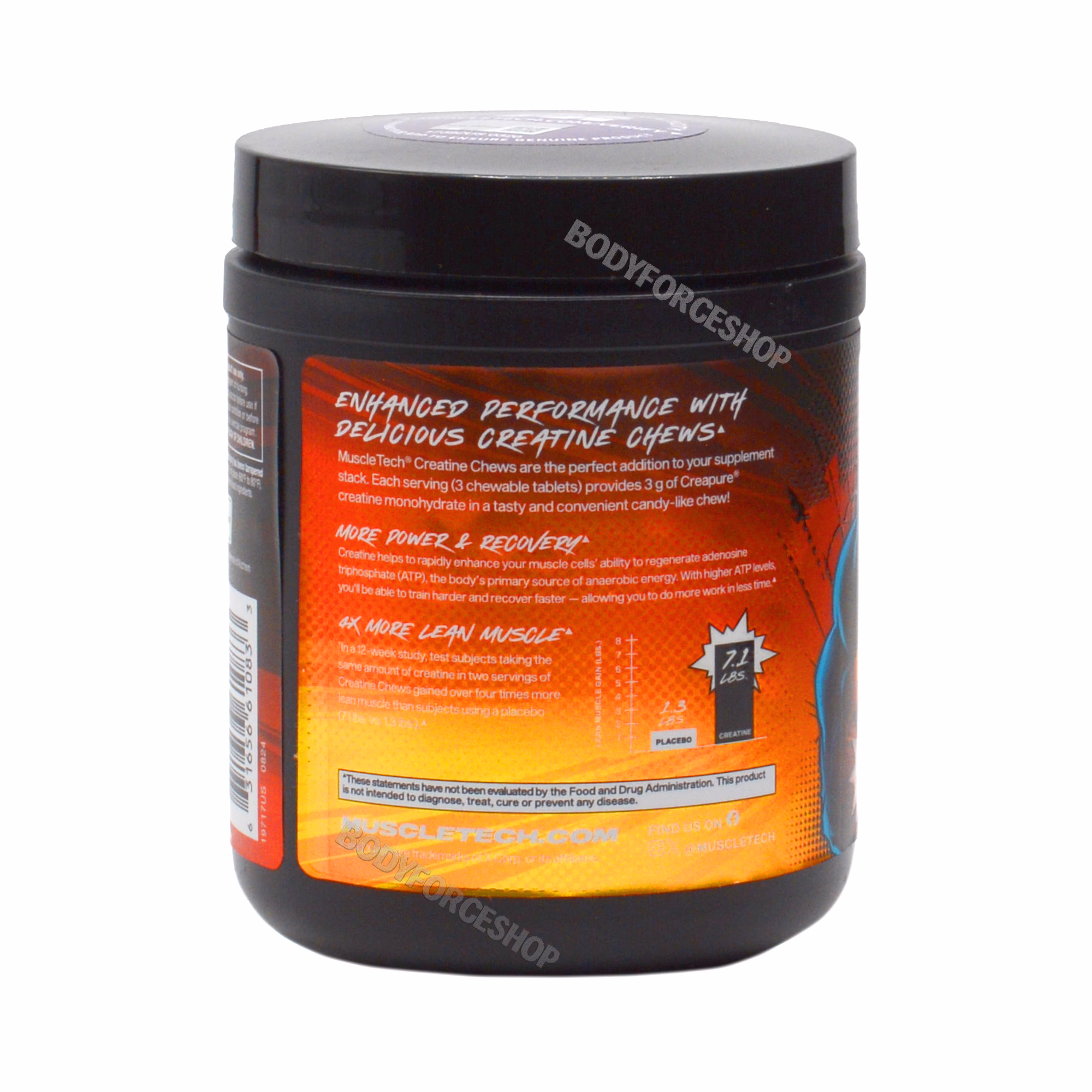 کراتین مونوهیدرات موجود درکراتین جویدنی ماسل تک لیمیتد با فرم Micronized فرآوری شده تا حلالیت و جذب بالاتری داشته باشد و از نفخ یا ناراحتی گوارشی جلوگیری کند. مصرف روزانه کراتین جویدنی ماسل تک لیمیتد قبل یا بعد تمرین باعث افزایش سطح ATP، بهبود پرفورمنس در تمرینات انفجاری و تسریع بازسازی عضلات میشود. کراتین جویدنی ماسل تک لیمیتد برای ورزشکارانی که به دنبال راحتی مصرف، اثربخشی سریع و تجربهای متفاوت از کراتین هستند، گزینهای عالی محسوب میشود،اگر هدف شما افزایش حجم و وزن توده عضلانی خالص در کنار افزایش قدرت باشد کراتین جویدنی ماسل تک لیمیتد بهترین گزینه برای شما است.