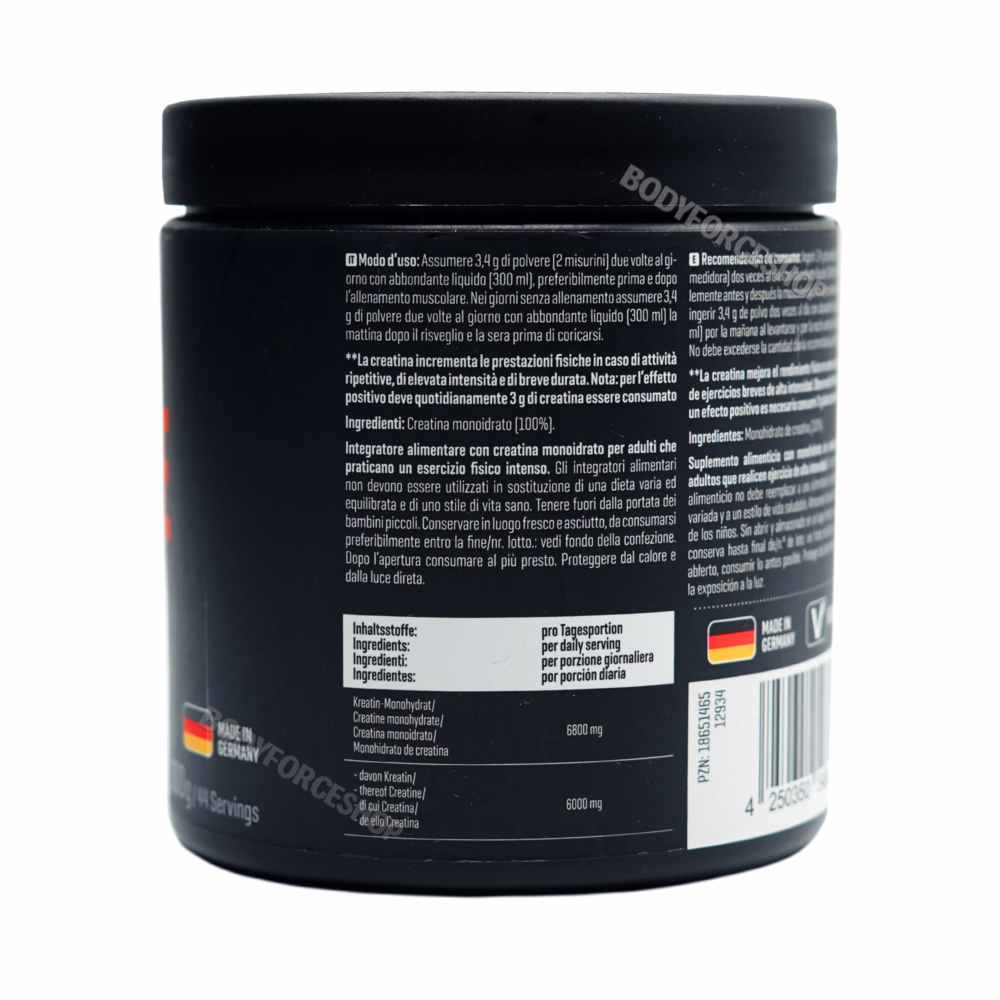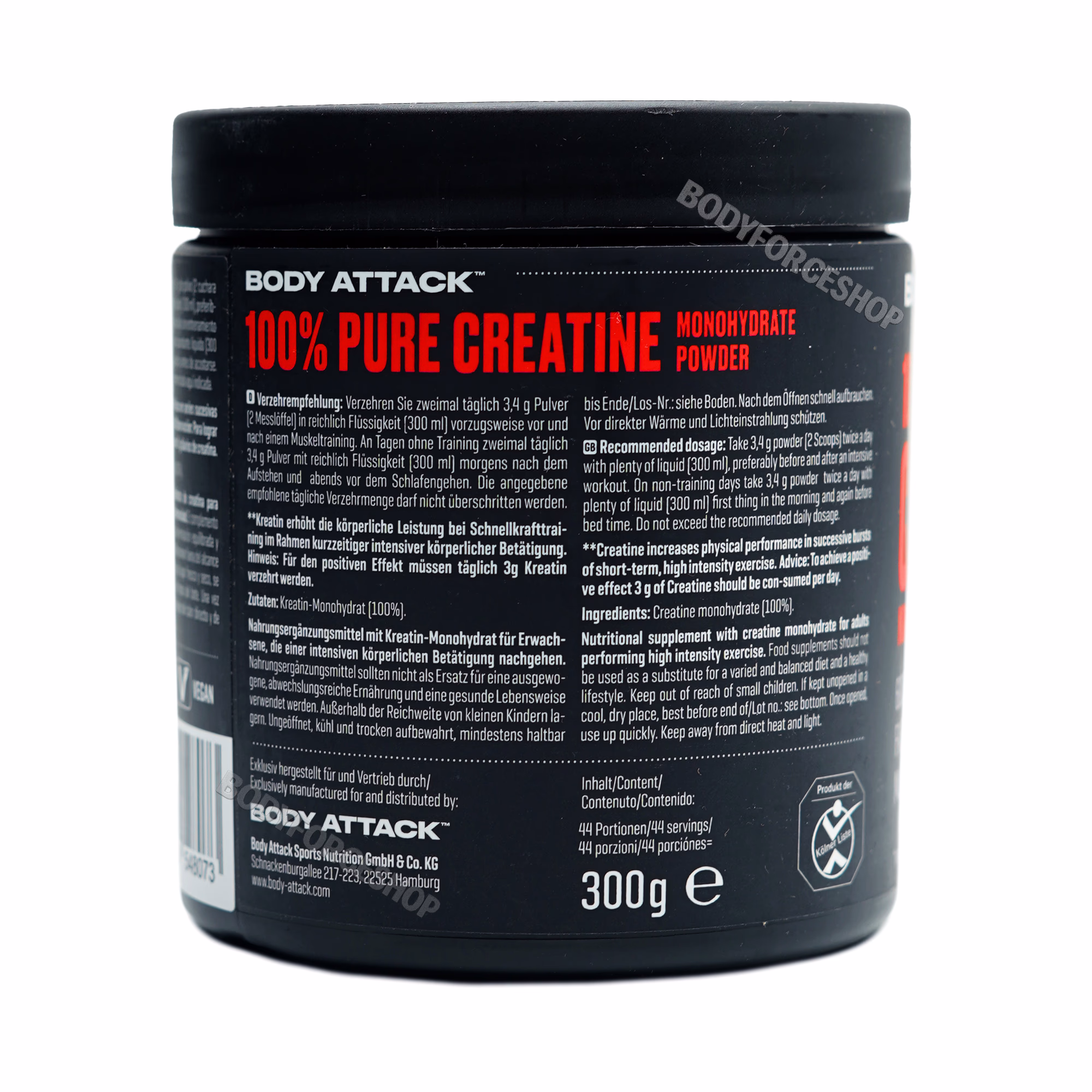 مکمل Body Attack 100% Pure Creatine Monohydrate محصولی از کمپانی آلمانی Body Attack Sports Nutrition است که با تمرکز بر تولید مکملهای علمی، خالص و عملکردی، جایگاه ویژهای در بازار اروپا دارد. این محصول حاوی کراتین مونوهیدرات خالص با خلوص دارویی 100٪ است و در بستهبندی 300 گرمی (حدود 88 سروینگ) عرضه میشود. کراتین موجود در این مکمل پس از ورود به بدن به فسفوکراتین (Phosphocreatine) تبدیل شده و نقش کلیدی در تولید ATP، افزایش قدرت انفجاری، رشد عضله و کاهش خستگی ایفا میکند. فرمولاسیون آن فاقد فیلر، شیرینکننده، رنگ مصنوعی یا مواد نگهدارنده شیمیایی است و بهصورت پودر بدون طعم عرضه میشود.